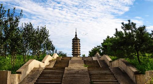 姚广孝塔,全名“太子少师荣国恭靖公姚广孝之塔”,建于明永乐十六年(1418)三至六月间。姚广孝塔坐北朝南,通高33米,为八角九级密檐砖塔,须弥座浮雕寿字和花卉,其上为三重外倾莲花瓣,上承塔身。塔身东、西、南、北四面雕仿木隔扇门,其他四面则雕花棂假窗。正面门楣上嵌石一方,上镌楷书:“太子少师赠荣国恭靖公姚广孝之塔。”塔身之上为九重叠涩檐,各角悬铜铃,风吹作响,声音悠远。塔刹铁制,由八条铁链锢于檐角吻兽上,状似葫芦,上耸立柱,直插云天。在距塔大约30米处的神道正中,姚广孝神道碑尚存。此碑通高4米,宽1.10米,厚0.33米,螭首龟蚨,十分壮观。碑额篆书“御制荣国公神道碑”,上镌永乐帝《御制推诚辅国协谋宣力文臣特进荣禄大夫上柱国荣国公谥恭靖姚广孝神道碑铭》。