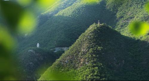 于灵鹫禅寺左北望,一峰高耸,上树一塔,俗称鞭塔,为辽代谷积山院遗迹,塔南向,为六角七级密檐塔,通高7米,砖结构,塔基须弥座式,塔身正面有券门可进塔,塔内穹隆顶。塔门楣原有铭文,风化严重,字迹不清。其他五面开直棂假窗,无仿木砖斗拱,上为七层密檐,无刹。